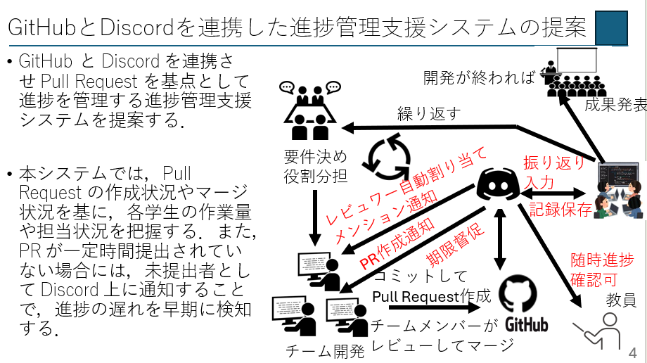 ソフトウェア開発PBLにおけるGitHub と Discord を連携した進捗管理支援システムの提案と評価